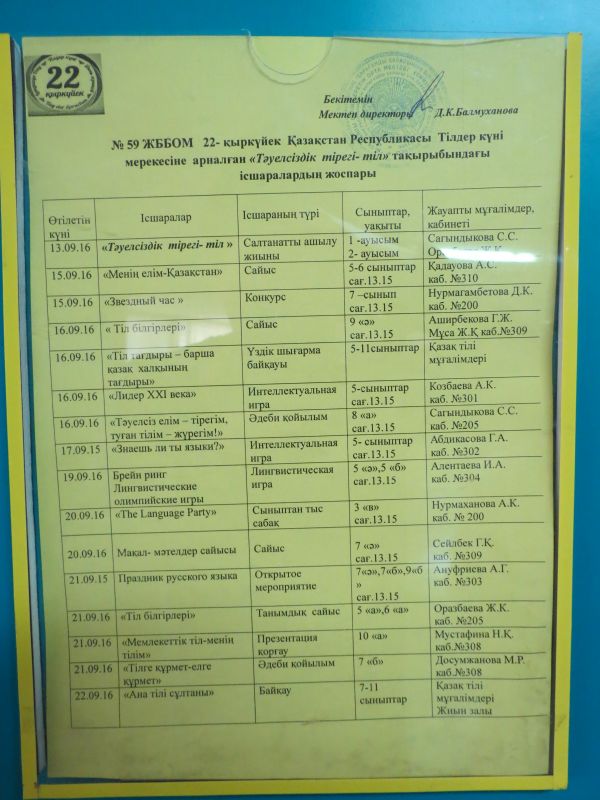2016 жылдың 16 қыркүйек күні «№59 ЖББОМ» КММ жалпы мектептік...