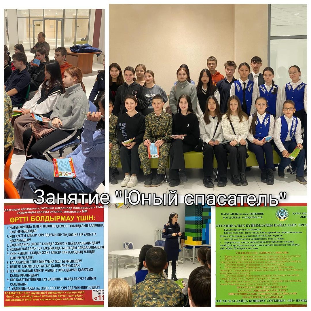 «Жас құтқарушы» үйірмесінің мүшелері Қарағанды қаласының Төтенше жағдайлар және қоғамдық ұйымдарының жоспарына сәйкес «Жас құтқарушы» сабағына белсене қатысты.