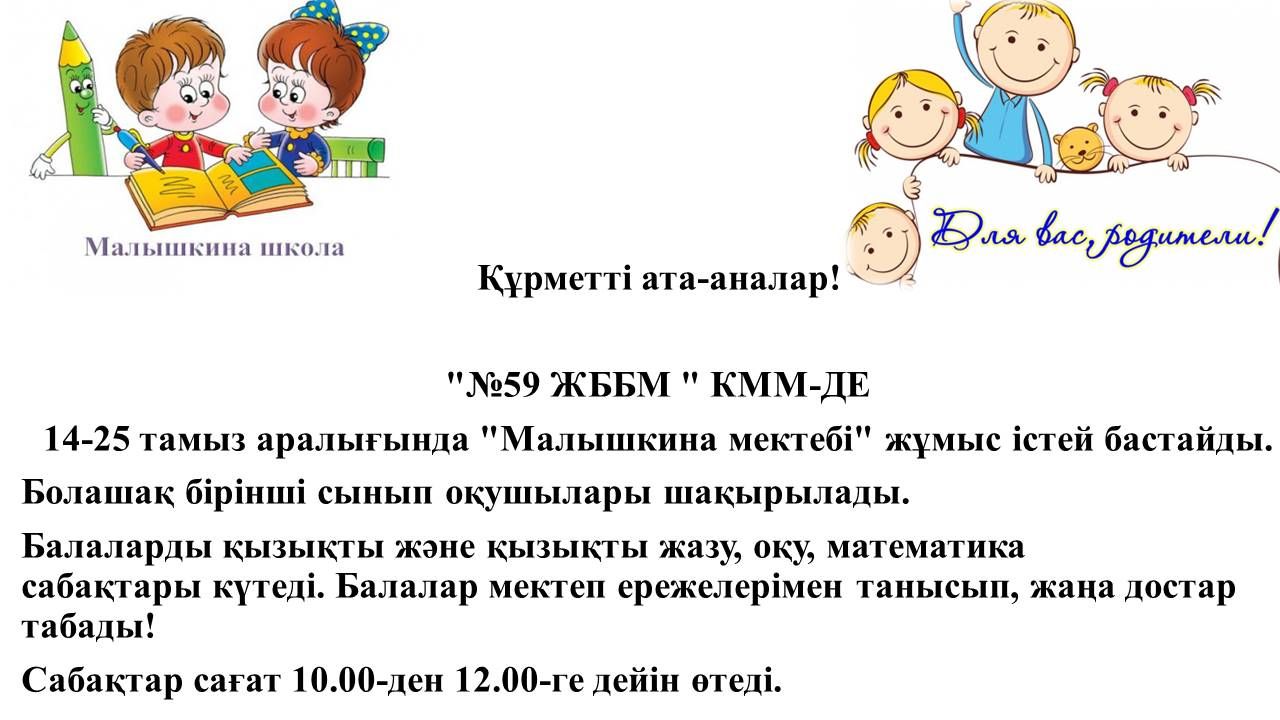 14-25 тамыз аралығында "Малышкина мектебі" жұмыс істей бастайды.