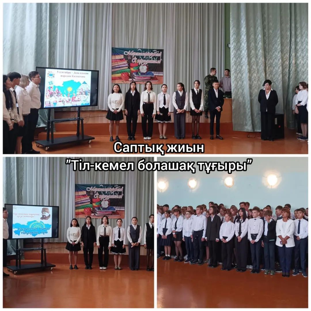 5 қыркүйек - Қазақстан халықтарының тілдері күніне байланысты “Тіл- кемел болашақ тұғыры” тақырыбында салтанатты саптық жиын өткізілді.Жауапты 10”Ә” сыныбы.