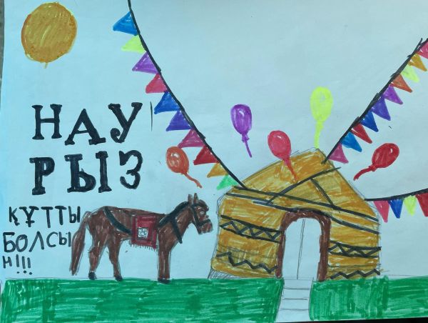2 «Ә» сынып оқушылары «Наурыз мейрамы» мерекесіне арналған сурет көрмесіне белсене қатысты.