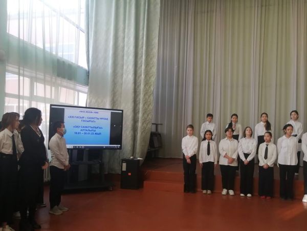 В рамках Недели читательской грамотности проведена линейка: «XXI ғасыр - сауатты ұрпақ ғасыры». Учитель: Сагындыкова С.С