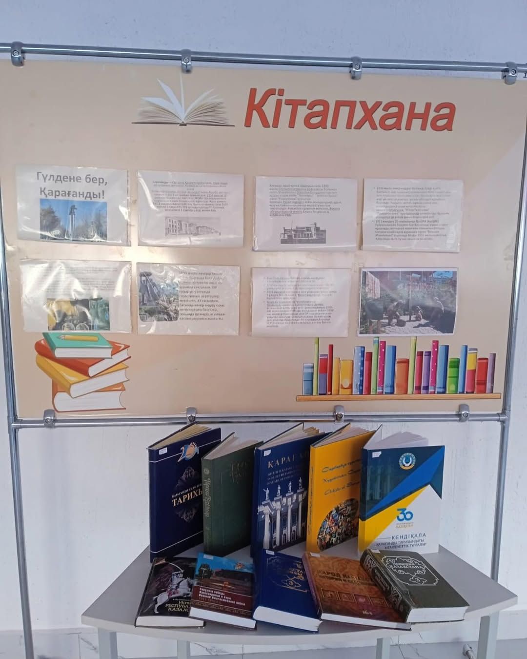 Кітапхана қала күніне арналған «Гүлдене бер, Қарағанды!» атты кітап көрмесін ұйымдастырды. Жауаптылар: Абдрахманова Г.Т., Момбекова А.Т. В библиотеке оформлена книжная выставка, посвя…