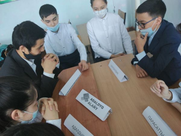 Вместе с участниками клуба "Адал ұрпақ" в 9 "А" классе прошел диспут на тему "Адалдық алаңы".
