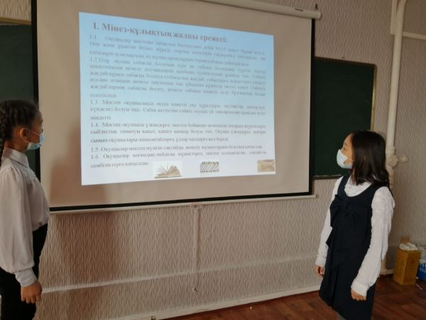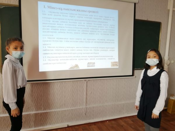 В рамках недели правовой грамотности в 5 А классе прошел классный час на тему "Правила поведения школьников в школе" Классный руководитель Оразбаева Ж.К.