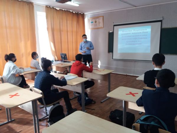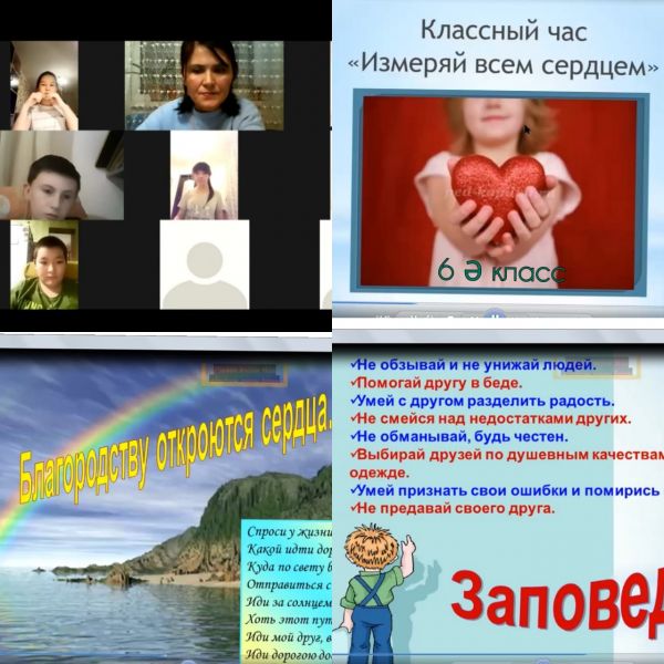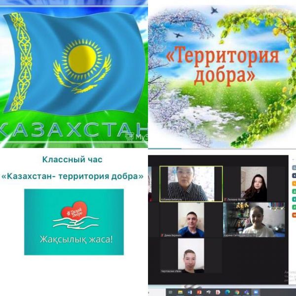 В 7В классе в онлайн формате прошел классный час на тему "Казахстан - территория добра". Классный руководитель Азбаева Б.Ж.