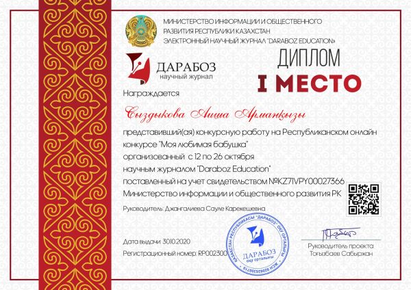 Учащиеся 7-х классов приняли участие в Республиканском онлайн конкурсе посвященном 175-летию великого казахского поэта Абай, организованном научным журналом «Daraboz Education» Учитель Д…