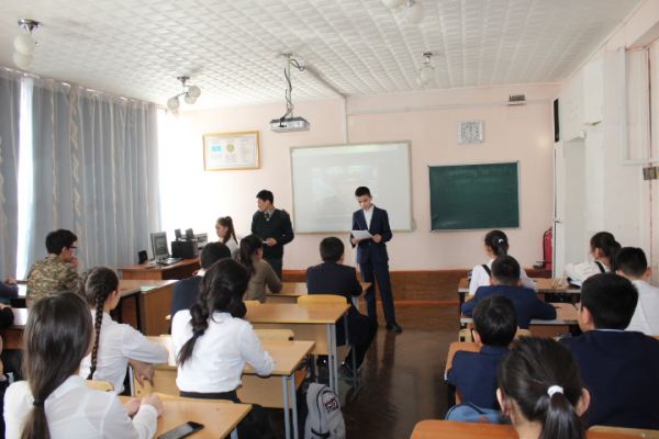 14.02.2029г. В рамках предметные декады математики, физики и ИВТ был провенден открытый урок по информатике на тему "Информация для презентации". Учитель Жұмабай Д.Ж.