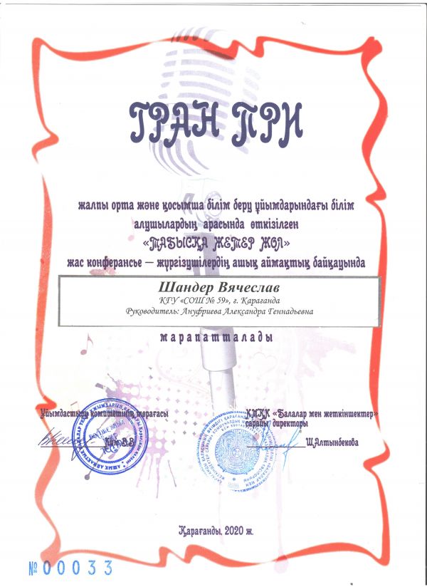 13 февраля в ДДЮ состоялся конкурс юный конферансье "На пути к успеху" ученик 9Ә класса Шандер Вячеслав награжден Гран-при.