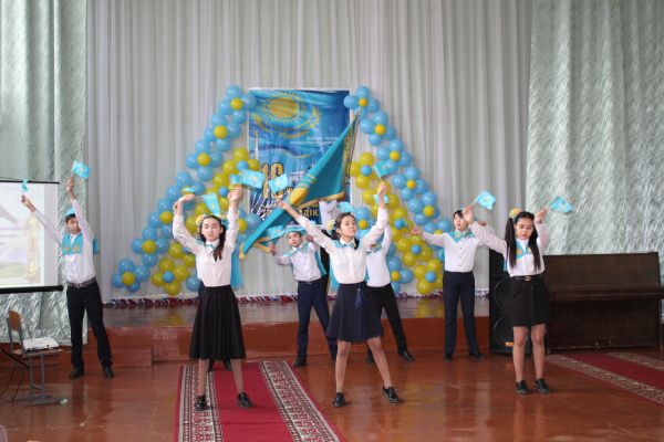 В рамках празднования Дня Независимости РК среди учащихся 8-10 классов прошел конкурс патриотической песни и флеш-моб