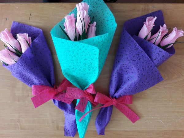 Сегодня ребята из кружка «АРТ студия учились делать цветы розы с сюрпризом. Затем составляли букеты роз. Руководитель кружка Нефедьева Е.Б.
