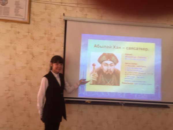 16.05.2019г. в СОШ№59 среди учащиеся 5-9 классов были проведены воспитательные часы на тему «Абылай хан мен Кенесары хан ерлік дәуірінің ерен тұлғалары»