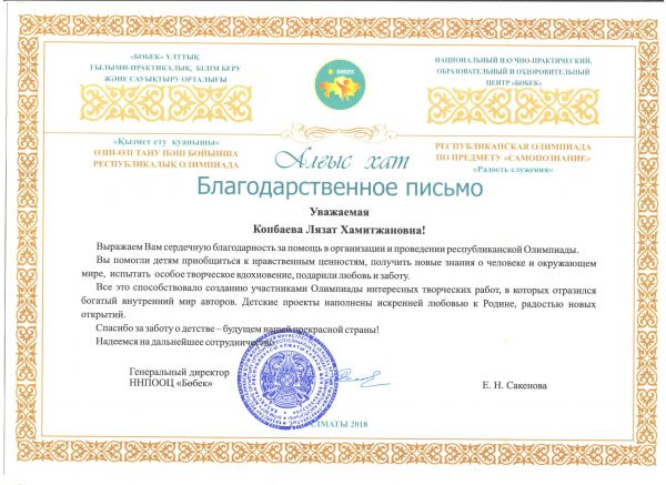 Участие в республиканской олимпиаде по самопознанию в городе Алматы
