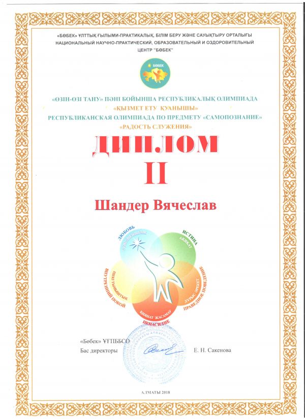Команда «СОШ№59» учащиеся 8-9 классов Шандер В, Кинчик А. и Махмудова М на республиканской олимпиаде по самопознании заняли 2 место. Руководитель и учитель по самопо…