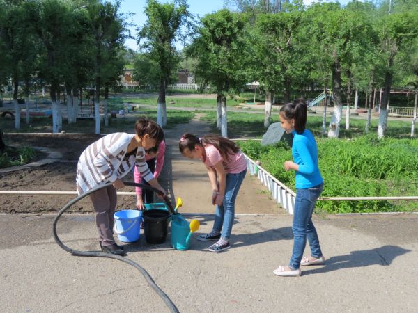 С 30 мая по 5 июня учащиеся 5 «а» класса СОШ №59 (кл.руководитель Оразбаева Ж.К.) работали пришкольном участке: поливали цветы, окучивали почву.