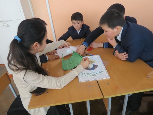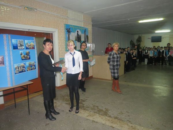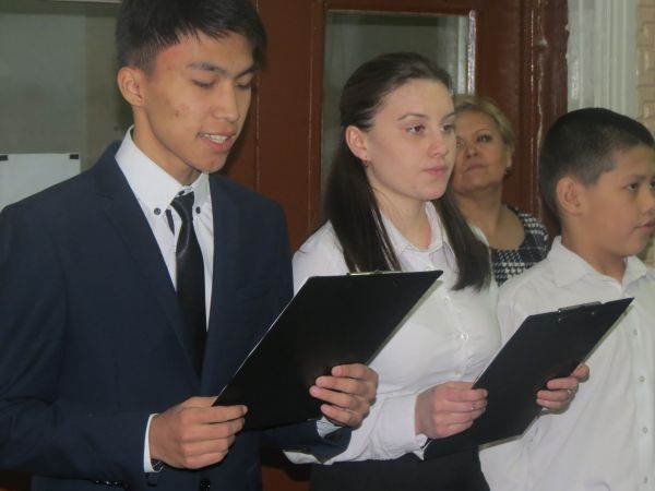 Ученицу 10 класса Қаныбек қызы Нурзада занявшую І место по казахскому языку в городской олимпиаде.