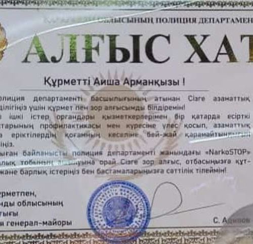 «Тең-теңімен» еріктілер клубының жетекшісі 10б сынып оқушысы Сыздықова Айша Қарағанды облысы бойынша департамент басшысының Алғыс хатымен марапатталды.