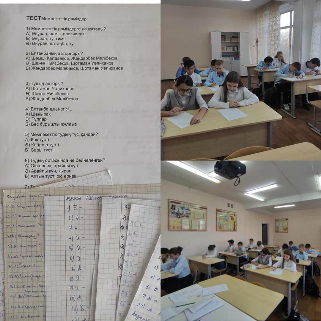 7 сыныптарда Қазақстан Республикасының мемлекеттік рәміздерін білу бойынша тестілеу өткізілді.