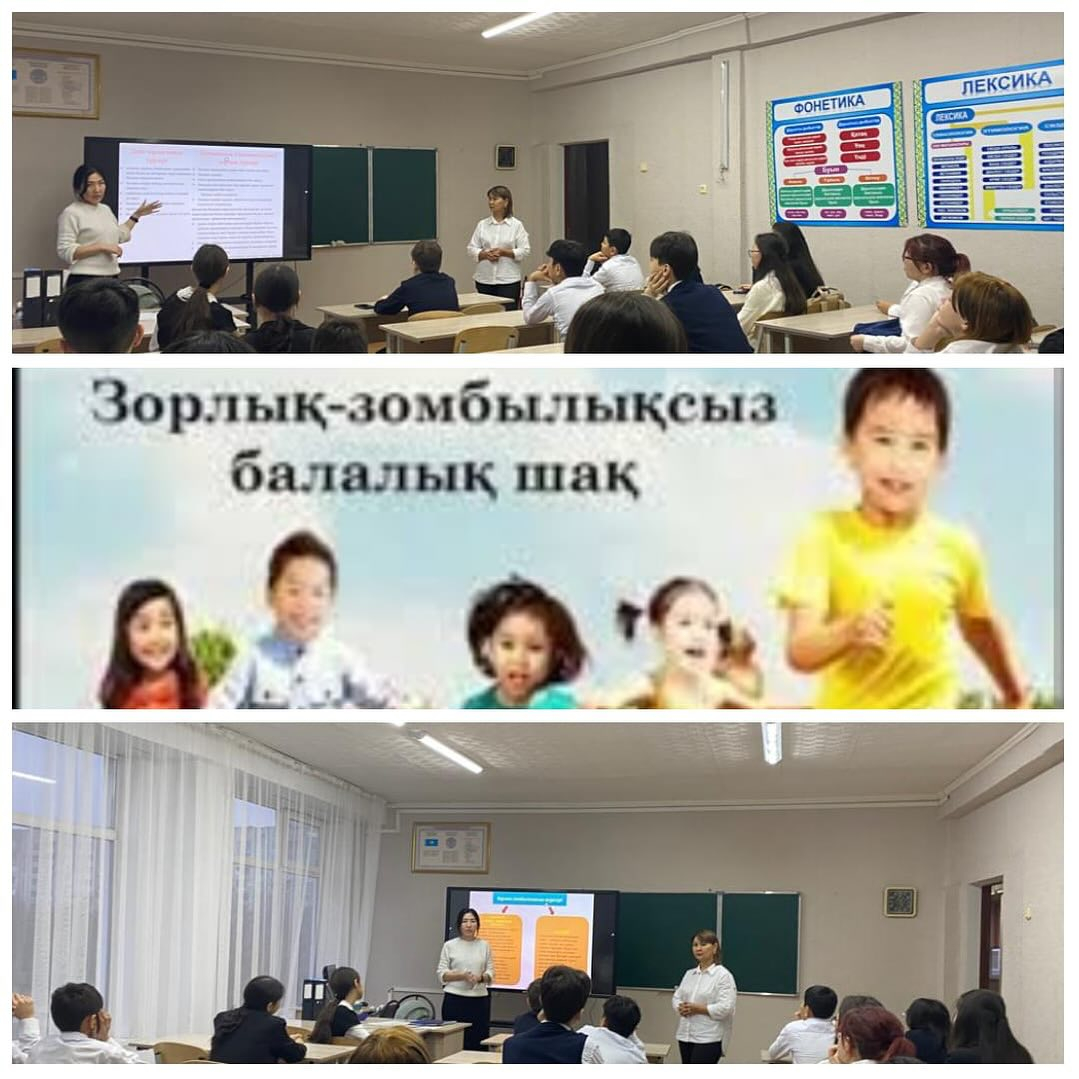 "Қатыгездіксіз және зорлық-зомбылықсыз балалық шақ" ақпараттық науқаны аясында 8 "А"сыныбында сынып жетекшісімен бірлескен психологиялық сабақ өтті.…