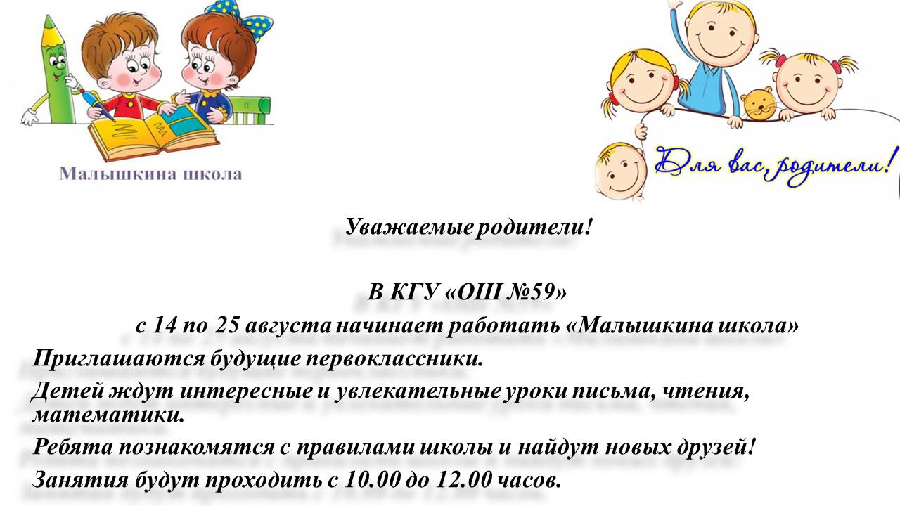 с 14 по 25 августа начинает работать «Малышкина школа»