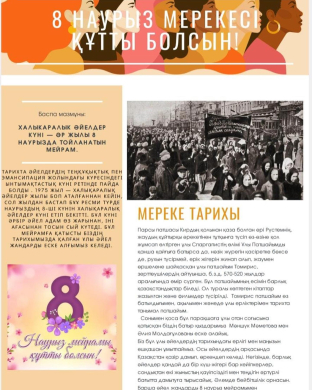 Халықаралық әйелдер күні қарсаңында 8 «В» сынып оқушылары мерекенің тарихымен, әртүрлі елдердегі мерекелеу дәстүрлерімен танысты.