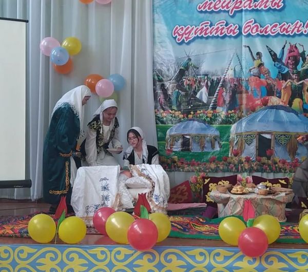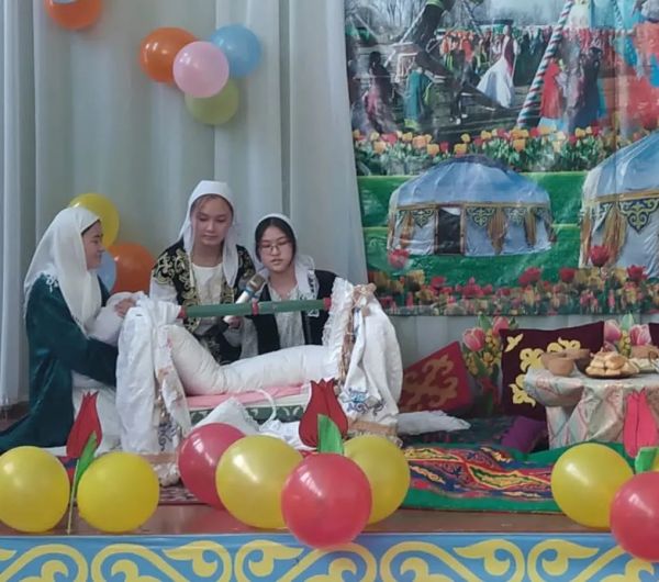 Наурыз мейрамына байланысты "Самарқанның көк тасы жібіген күн..." ұлттық салт-дәстүрлерден көрініс көрсету кезінде 6«А» сынып оқушылары "Сүйінші", «Балаға ат қою» дәстүрлерінен көрініс көрсетті. Сынып жетекші Оразбаева Ж.К.