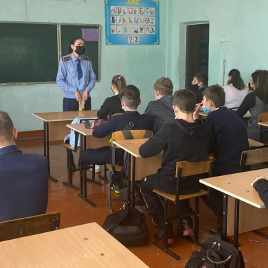 15.03.2022 ж. Орталық ОП ОҚПБ Мемлекеттік-құқықтық іздестіру басқармасының Қылмыстық іздестіру бөлімінің қызметкерлері полиция аға лейтенанты Абдрахманова А.М. Ал полиция капитаны Завотпаева Ш.Е. 5-8 сынып оқушыларымен «Газ бүріккіштерді тағу, кәмелетке т