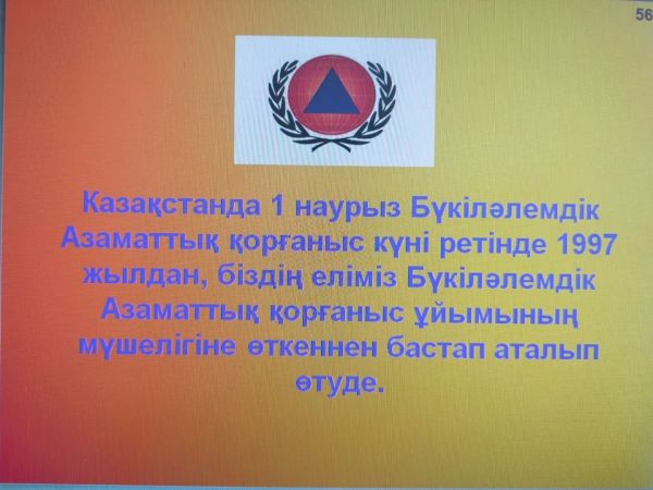Азаматтық қорғаныс күніне орай 7 "А" сыныбында сынып сағаты өткізілді. Мұғалім Нурмаханова А.К.