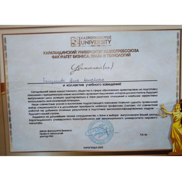 Құттықтаймыз!!! Қарағанды қаласы мен Қарағанды облысының 11 сынып оқушылары арасында өткен «Құқық негіздері» олимпиадасына Кинчик Александра, Садуақасов Дархан және Шандар Вячеслав қатысып, жүлделі 3-орынға ие болды. Жетекшісі: Гагина