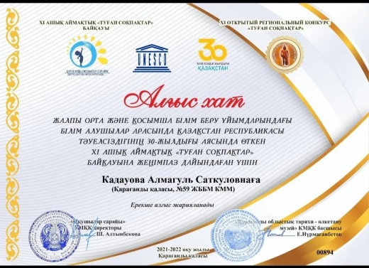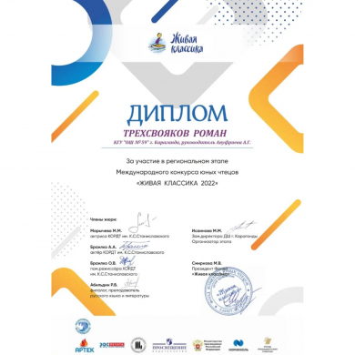 Құттықтаймыз!!! «Жанды классика» байқауының облыстық кезеңіне 11-сынып оқушысы қатысты. Жетекшісі: Ануфриева Александра Геннадьевна
