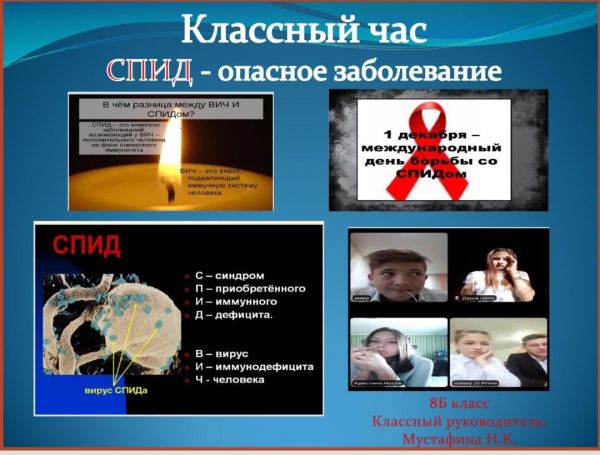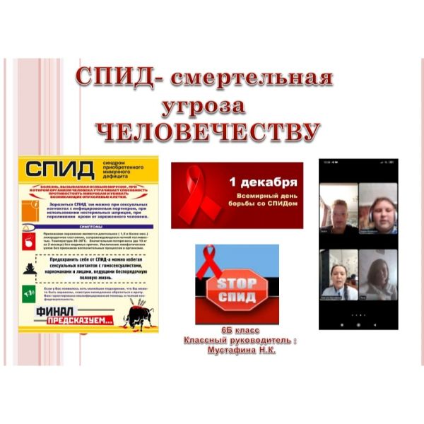 в 6Б и 8Б классе прошел онлайн —классный час на платформе Zoom. Тема: "СПИД - опасное заболевание" Классный руководитель: Мустафина Н. К.