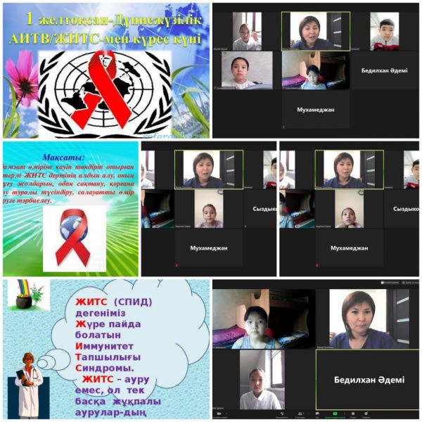 в 10 "А" классе прошел онлайн —классный час на платформе Zoom. Тема: "СПИД - опасное заболевание" Классный руководитель: Кенжебаева Р.К.