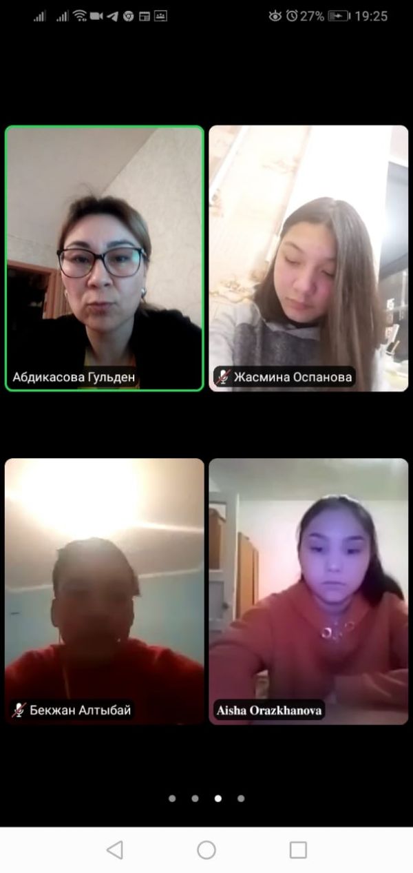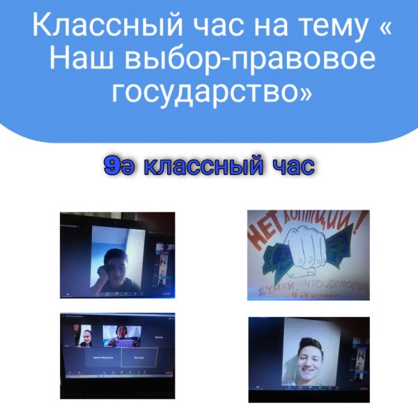8 а сынып оқушыларына сынып жетекшісі Оразбаева Ж.К мен мектеп психологы Қ.Ж. Жакупова бірлесе отырып "Біз өз құқығымызды білеміз бе?" тақырыбында Зум платформасында іс шара өткізді.