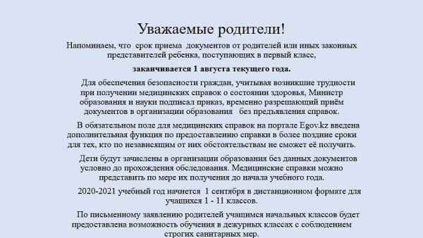 Жаңа 2020-2021 оқу жылына дайындық барысы туралы.