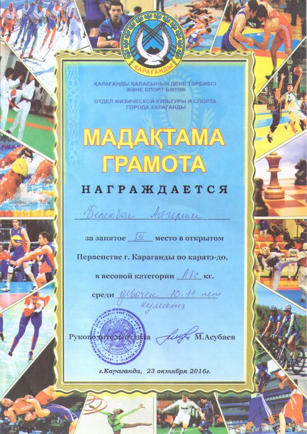 №59 ЖББОМ-дегі «Каратэ-до» секциясы оқушылары 23 қазан күні «Қарағанды қаласы Біріншілігінен» «Каратэ-до» сайысына қатысып жарыста жүлделі…
