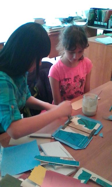 В библиотеке на каникулах работает переплетный кружок, где дети учатся переплетать книги, изготавливать блокноты, закладки для книг.