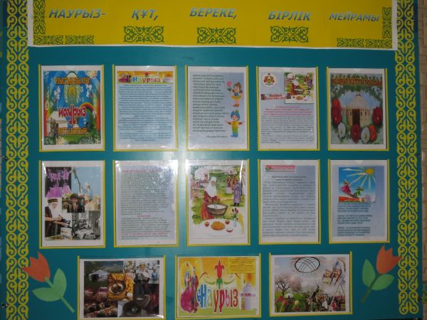 15-19 наурыз аралығында №59 ЖББОМ-де 2-8 сыныптар арасында Наурыз мерекесіне арналған оқушылардың шығармашылық жұмыстары көрмеге қойылды. Оқушыларға Наурыз мерекесін насихаттауда стенд жасалды.