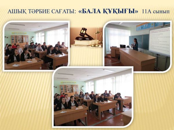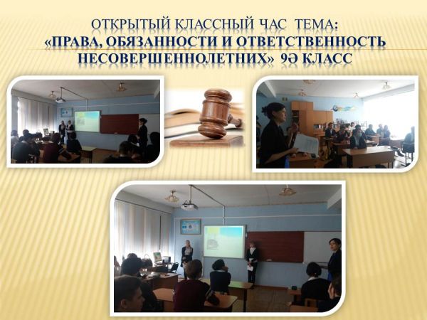9-11 сыныптың жетекшілеріның ашық сынып сағаттары, дөңгелек стол және заңды викториналары мына тақырыптарда болды: