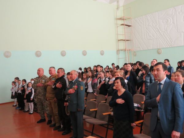 15 ақпанда 2016ж №59 ЖББОМ-де патриоттық тәрбие беру, Отан қорғаушыларды құрметтеу, ауған-жауынгерлерін еске алу мақсатында салтанатты саптық жиынды «Жас ұландықтар» өткізді.