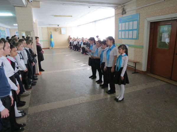 №59 орта мектебінде 12 ақпанда патриоттық сезімді арттыру, Отанын қорғауға тәрбиелеу мақсатында «Жас Ұлан» ұйымының ұйымдастыруымен