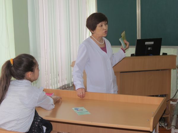 Мектеп медбикесі Тусупова Г.Т дәріс оқыды.