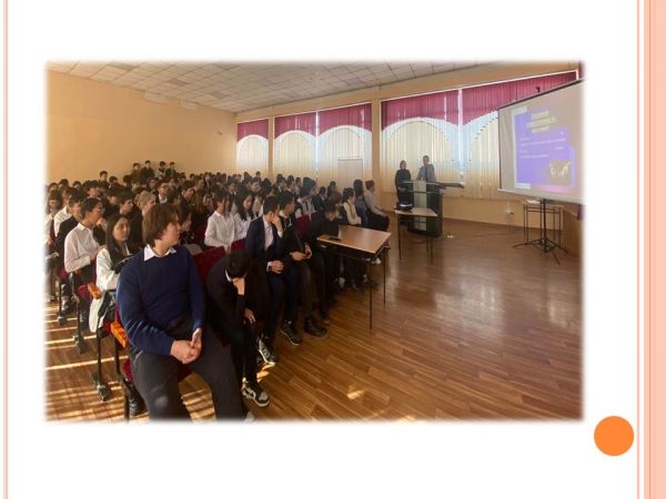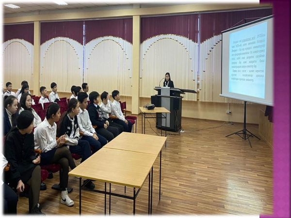 10"А" сынып оқушыларымен «Мен және менің сыныбым» тақырыбында тренинг өтті. Оқушылар белсенді қатысып, жақсы әсерде қалды. Тренинг мақсаты: - оқушылардың арасында жағымды қарым-қатынас орнату, бір-бірін сыйлауға, адал дос болуға және қоршаған ортамен дос