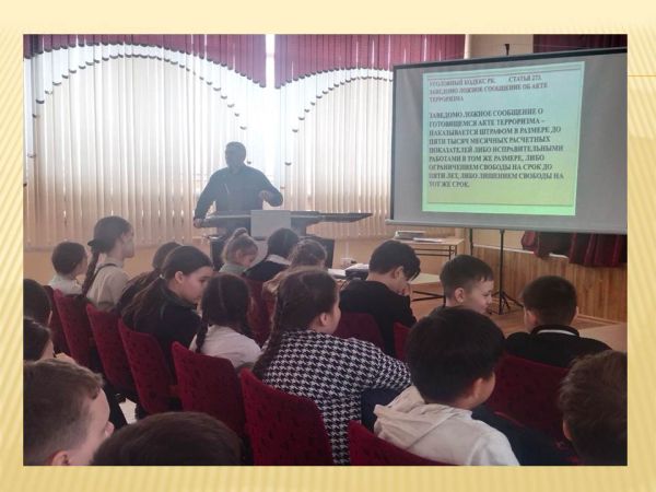В рамках проведения недели Правового навигатора для учащихся среднего звена проведена тематическая лекция "Ответственность несовершеннолетних за заведомо ложные сообщения о факте терроризма".