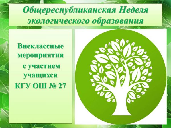 Общереспубликанская Неделя экологического образования. Внеклассные мероприятия с участием учащихся КГУ ОШ № 27