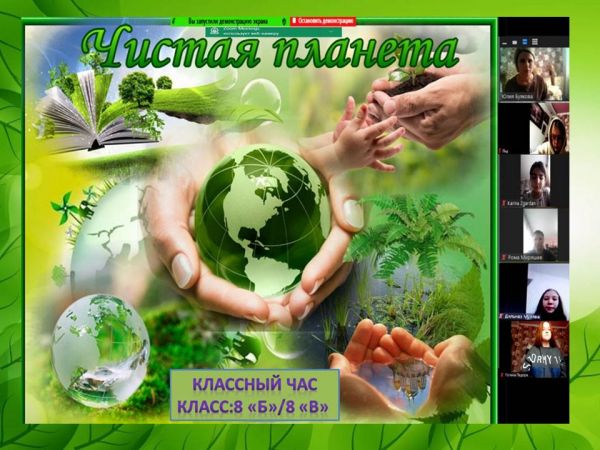 В рамках Акции "ЭкоАсар" в 8Б и 8 В классах проведен классный час "Чистая Планета" в режиме онлайн.