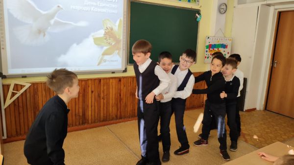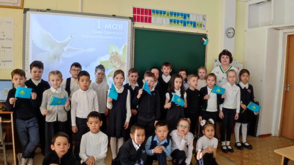 В 1 Б классе прошел классный час на тему"1 Мая- День единства народа Казахстана". Учащиеся познакомились с историей праздника, разучили игры народа Казахстана:"Алармаж. Орамал. Пчёлки и ласточки"