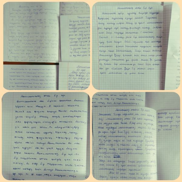 " Математикасыз бір күн" 8а сынып оқушыларының эсселері. Жетекшісі Жекебаев Саян Шайкенович