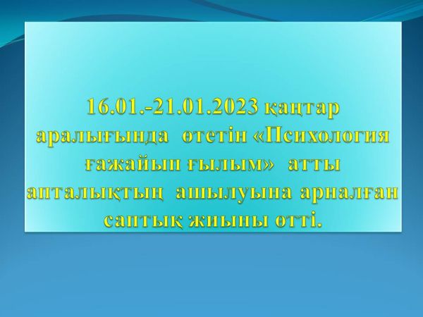 16.01.-21.01.2023 қаңтар аралығында өтетін «Психология ғажайып ғылым» атты апталықтың ашылуына арналған саптық жиыны өтті.