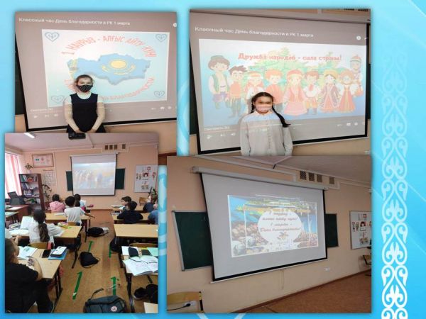 1 марта Казахстан отмечает День благодарности. В КГУ ОШ 27 проведены внеклассные мероприятия в рамках данного праздника.