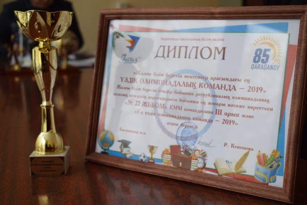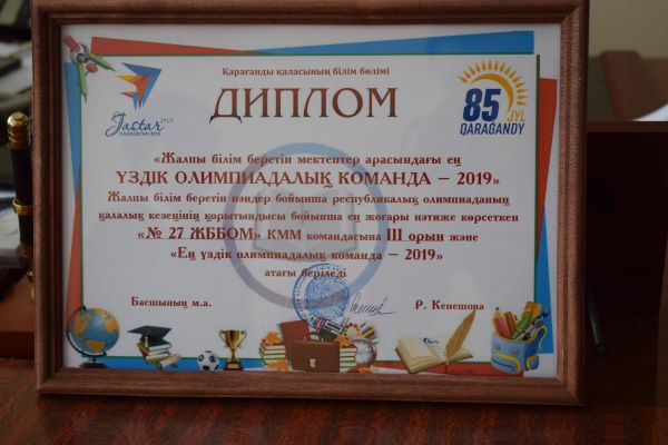 Оқушылардың Республикалық олимпиадасы 2018-2019 ІІ (қалалық) кезеңінде қазақ тілі пәнінен ІІ орынға ие болғаны үшін Қарағанды қаласы «№27 ЖББОМ» КММ